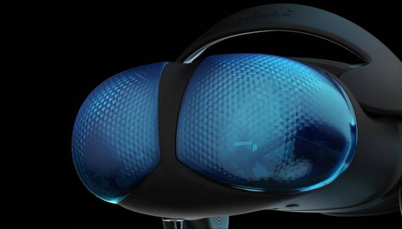 我们从下面的效果图可以看出,位于半透明罩里面的架梁包含四个显著的孔洞,而这可以是各种不同的传感器,如SteamVR传感器和外向摄像头传感器,又或者是用于附接半透明罩的接点。